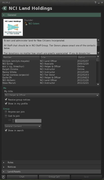 Once in the group, open up the 'My Groups' window using 'ctrl-g' or right click on yourself and select 'My Groups'